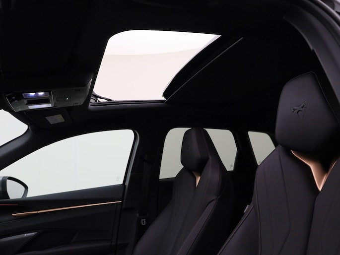 Ontspannen en zorgeloos autorijden, dat doet u met deze CUPRA Terramar. Deze auto komt uit het bouwjaar 2024. Uitstekende prestaties op de weg dankzij de verbrandingsmotor én elektromotor. En héél vriendelijk voor het milieu en portemonnee! Hoge kwaliteit is ook binnenin aanwezig. Kijkt u maar naar de leren bekleding! Neem plaats op de comfortabele stoelen. Dankzij de elektrische bediening en het geheugen is het eenvoudig om hierin de beste zitpositie te vinden. Comfort, licht en het complete gevoel van ruimte wordt verzorgd door het elektrisch bediende panoramadak. Met een druk op de knop gaat de elektrische achterklep open. Het verwarmbare stuurwiel is een teken van ultieme luxe. Deze voorziening is een topklasse auto waardig. De matrix LED-verlichting in de koplampen bestaat uit een raster van lichtpunten met maximale opbrengst. Bij tegenliggers past het systeem precies die punten aan die hinderlijk kunnen zijn. U behoudt maximaal zicht! Natuurlijk behoren 20 inch lichtmetalen velgen, adaptief dempingsysteem, donker getint glas achter, in delen neerklapbare achterbank, LED-achterlichten en snelheidsafhankelijke stuurbekrachtiging ook tot de uitrusting van deze complete auto.