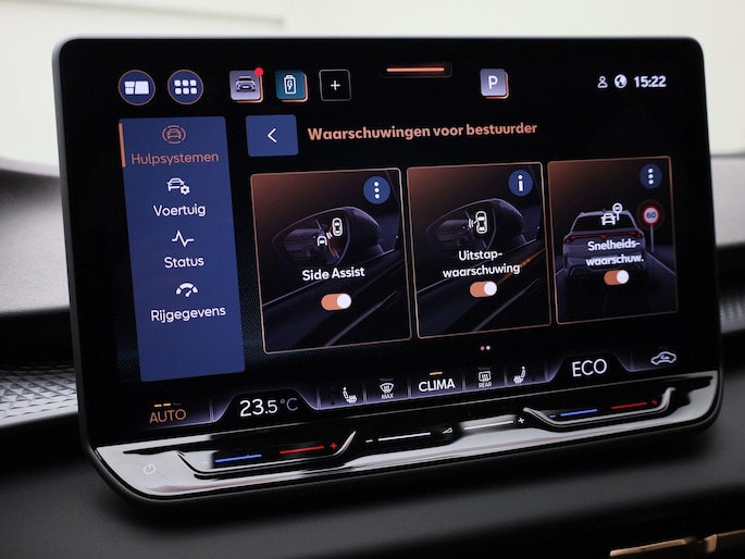 Geavanceerde technische systemen houden tijdens elke rit het verkeer in de gaten en reageren op potentieel gevaarlijke situaties. Hou de weg in het vizier! De head-up display zorgt dat u de dashboardinfo in beeld geprojecteerd krijgt. Verkeersborddetectie herkent tijdelijke en permanente verkeersborden langs en boven de weg. Het Lane-keeping systeem zorgt dat u mooi binnen de lijntjes blijft. Ongemerkt buiten de rijstrook komen is er niet meer bij. Verder is deze auto uitgerust met dodehoekdetectie, front assist, forward collision warning system, hill hold functie, vermoeidheidsherkenning en frontale botsbescherming.