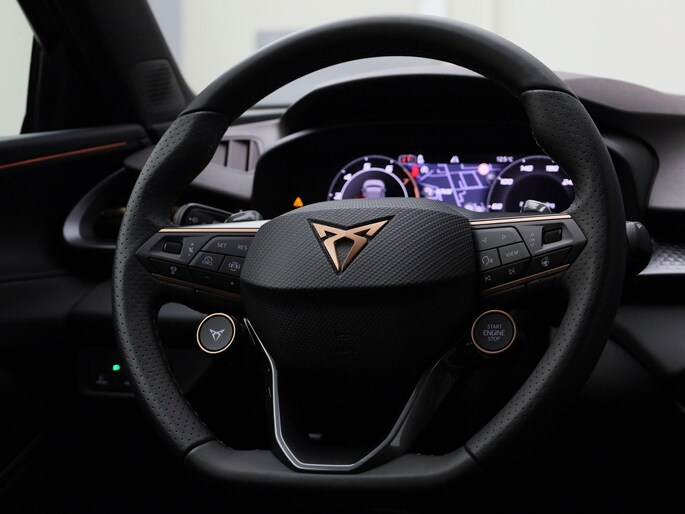 Alle benodigde informatie helder in beeld: het digitale dashboard is een geweldige rijhulp. De 360 graden camera kan het blinde vlek probleem van de achteruitkijkspiegel oplossen, waardoor ongevallen worden voorkomen. Adaptive cruise control is veilig en comfortabel. De snelheidsregelaar houdt automatisch afstand tot het voertuig dat voor u rijdt. Intelligente spraakbediening herkent uw commando's en voert opdrachten snel en soepel uit. U weet altijd hoe de auto eraan toe is dankzij Connected Services. Ook handig voor de garage en de wegenwacht. Even de app uitlezen en klaar! De uitrusting van deze CUPRA is met premium audiosysteem, navigatiesysteem, automatische airconditioning, draadloos opladen, DAB ontvangst en regensensor behoorlijk compleet.