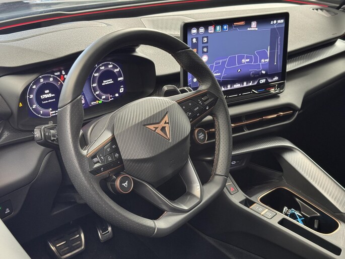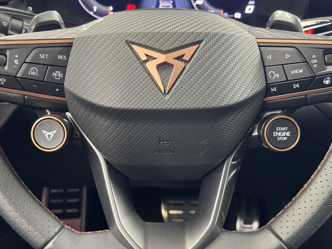 U geniet nog meer van het rijden met uw CUPRA omdat u wordt beschermd door intelligente veiligheidssystemen. Da's veilig! Alle informatie geprojecteerd op de voorruit via head-up display, zodat u uw ogen op de weg kunt houden! Bij de veiligheidssystemen van deze auto hoort ook de verkeersbord-detectie. Die leest tijdens het rijden als het ware met u mee en attendeert u op de significante verkeersborden langs en boven de weg. Het Lane-keeping systeem let constant op en waarschuwt of corrigeert als u onoplettend over de lijnen van de rijstrook gaat. Bovenop deze veiligheidsfeatures heeft deze CUPRA bovendien dodehoekdetectie, hill hold functie, vermoeidheidsherkenning, frontale botsbescherming en bandenspanningcontrolesysteem.