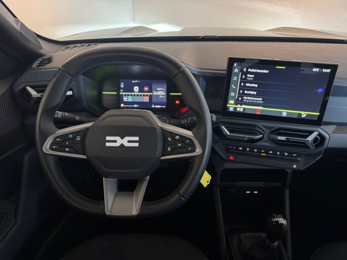 Deze auto is voorzien van een digitaal dashboard waarmee u de cockpit-interface kunt personaliseren. De hoogwaardige achteruitrijcamera en het display met hoge resolutie zorgen dat helemaal niets u meer ontgaat van wat er achter de auto gebeurt. Een belangrijke veiligheidsvoorziening is de bediening van het audio-installatiesysteem via knoppen op het stuur. Dab-ontvangst geeft daarbij een kraakheldere ontvangst. Natuurlijk is een complete auto als deze ook voorzien van sensoren die de omgeving in de gaten houden. Deze Dacia heeft niet alleen een automatisch inschakelbare verlichting aan boord, maar ook een regensensor. Nooit te snel, altijd constant: dat is het voordeel van de aanwezige cruise control. Met airconditioning, centrale deurvergrendeling met afstandsbediening, boordcomputer en verstelbaar stuur is deze Dacia helemaal compleet.