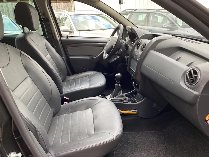 U rijdt gemakkelijk, comfortabel en zonder zorgen met deze Dacia Duster. De aandrijving van deze Dacia wordt verzorgd door een viercilinder motor en een handgeschakelde zesversnellingsbak. De lederen bekleding benadrukt de luxe uitstraling van deze auto. Deze Dacia Duster legt bestuurder én bijrijder compleet in de watten met de verwarmbare voorstoelen. Tot de uitrusting van deze Dacia behoren ook 16 inch lichtmetalen velgen, aluminium dakrailing, extra getint glas, in delen neerklapbare achterbank, elektrisch bedienbare en verwarmde buitenspiegels en elektrisch bedienbare ramen achter.