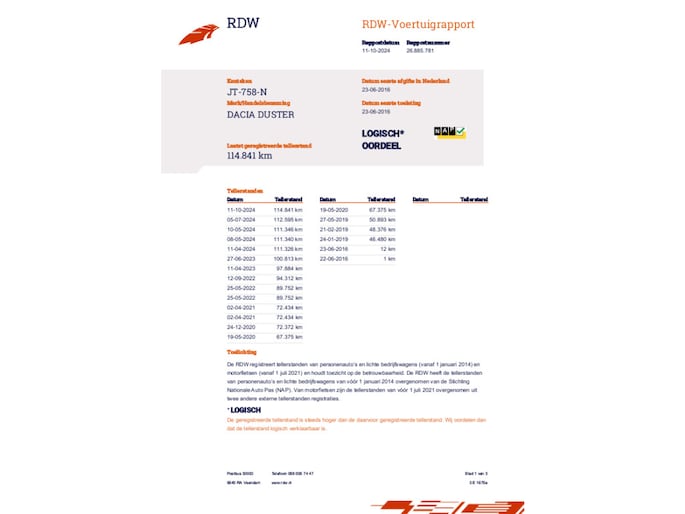 Kilometerstand gecontroleerd