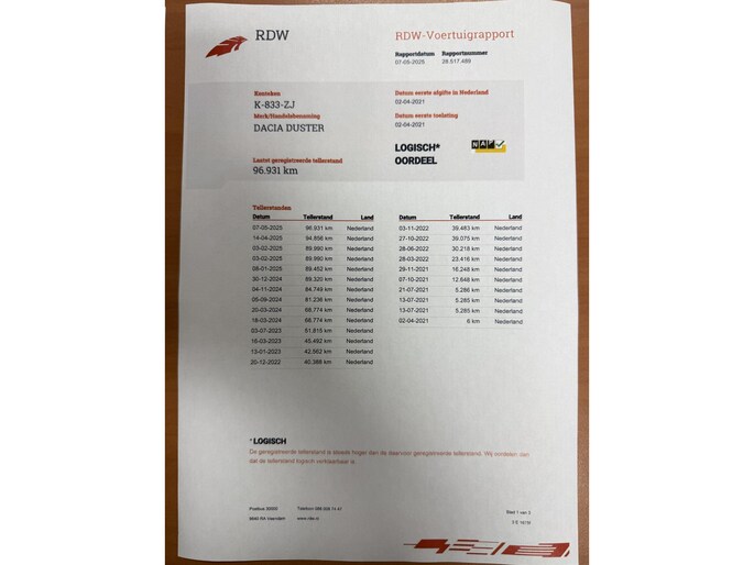 Kilometerstand gecontroleerd
