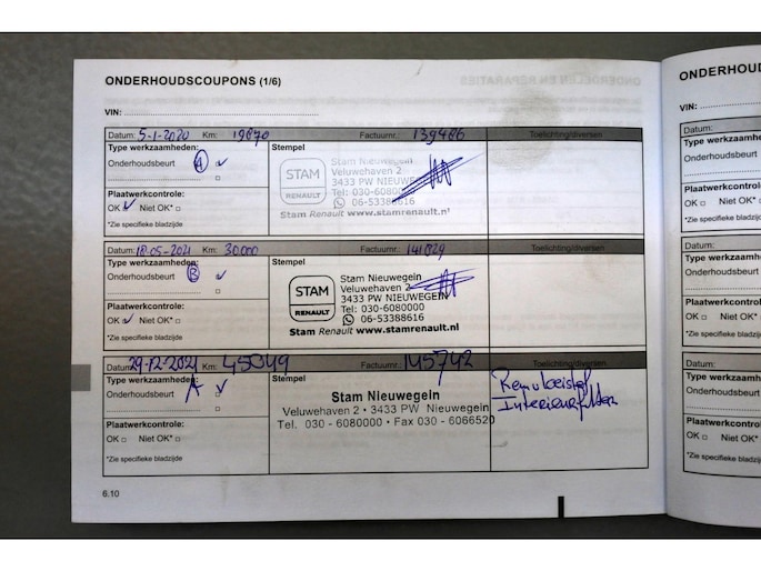 Onderhoudsboekjes: Aanwezig
