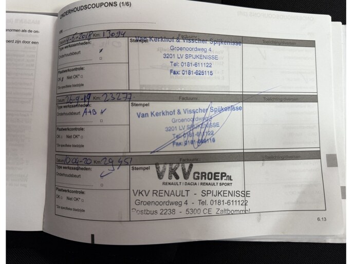 Onderhoudsboekjes: Aanwezig
