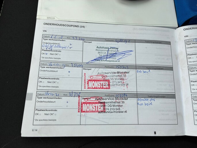 Onderhoudsboekjes: Aanwezig