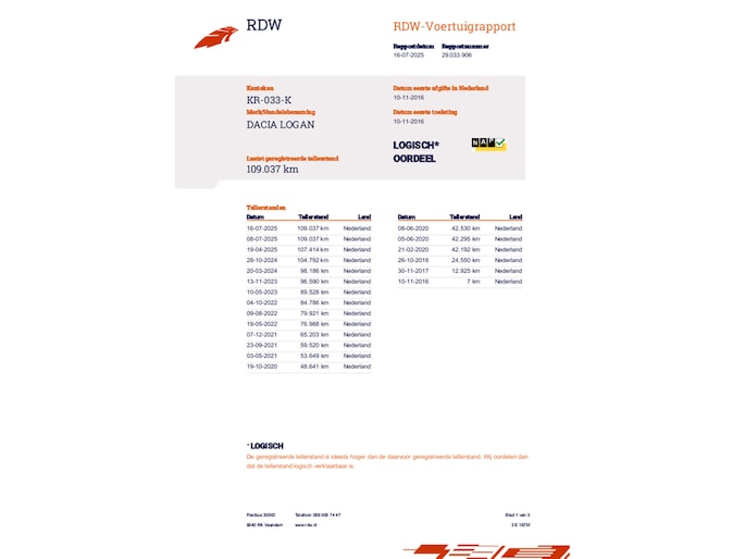 Kilometerstand gecontroleerd