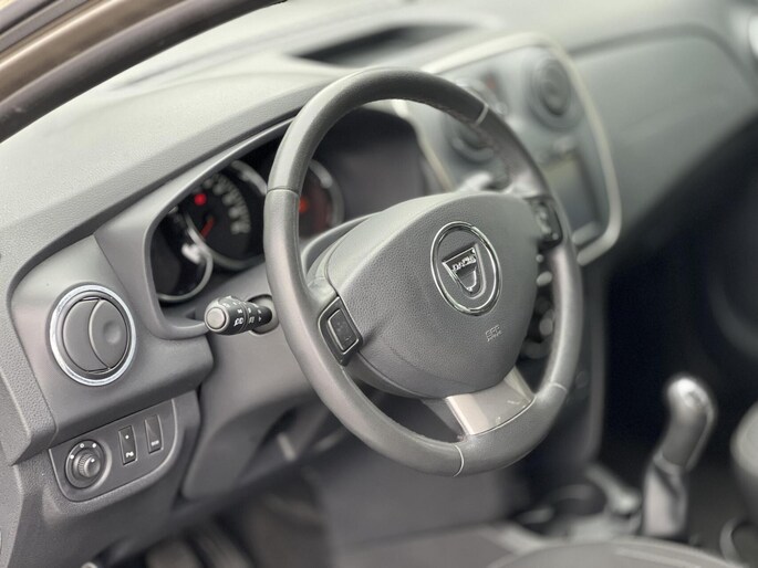 Terwijl het navigatiesysteem de ideale route voor u uitstippelt, geniet u van de kwaliteit van het audiosysteem. De bediening is bovendien gemakkelijk via knoppen op het stuur. Geen parkeervak is te klein dankzij de assistentie van de parkeersensoren. De cruise control levert een mooie, gelijkmatige koers. Dat rijdt prettig. Met één druk op de knop blaast de airconditioning een koele bries door het interieur. Deze Dacia is voorzien van isofix-aansluiting, centrale deurvergrendeling met afstandsbediening, bagage afdekhoes, boordcomputer en verstelbaar stuur.
