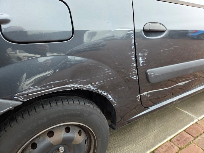 7 persoons, auto rijdt goed. Buitenom rondom beschadigingen.