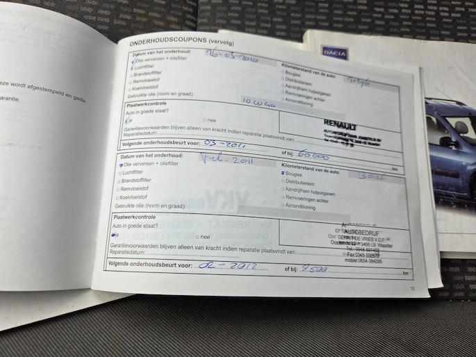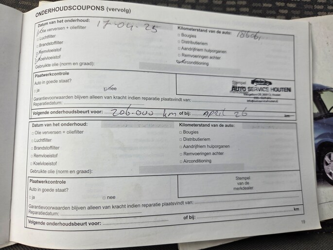 Onderhoudsboekjes: Aanwezig