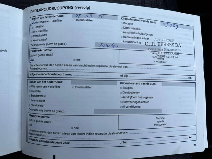 Onderhoudsboekjes: Aanwezig