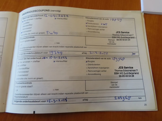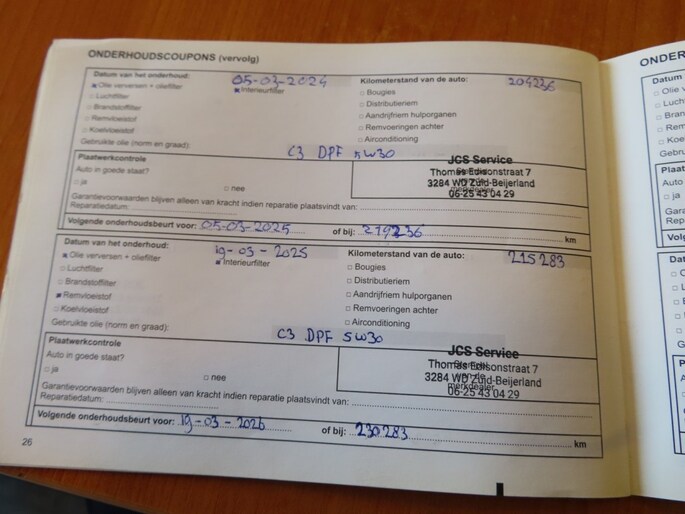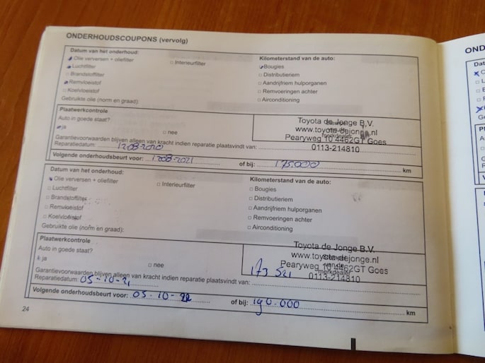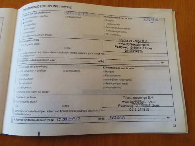 Onderhoudsboekje aanwezig