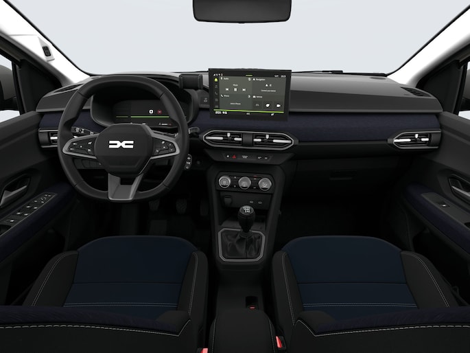 - Dacia MEDIA DISPLAY: 10" touchscreen, radio DAB+, Bluetooth®, stuurbediening, 4 speakers, smartphone replicatie via kabel of draadloos (Android en Apple CarPlay)