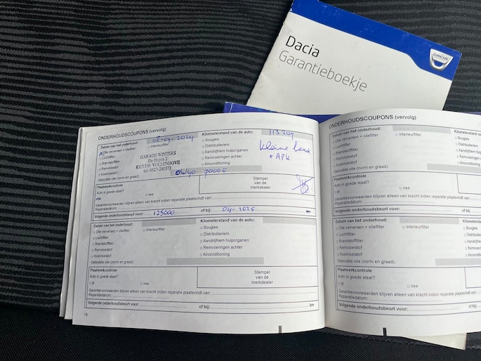 Onderhoudsboekjes: Aanwezig
