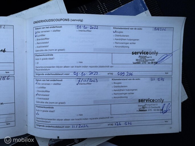 De auto is uitstekend onderhouden (zie foto’s van het onderhoudsboekje). De distributieriem is vervangen bij 97.186 km, wat zorgt voor extra zekerheid.