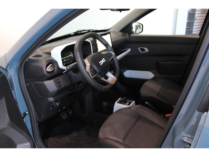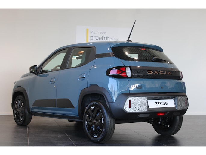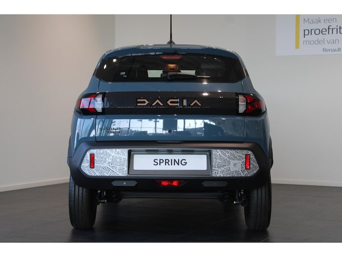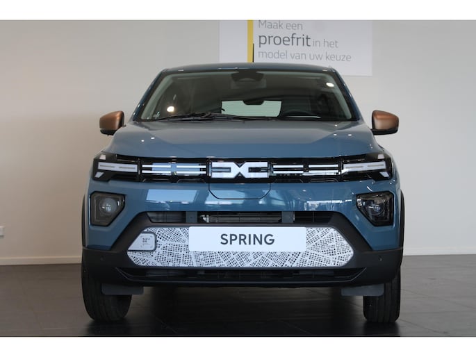 Hij biedt volop ruimte, deze Dacia Spring, en dankzij zijn elektrische aandrijving is er ook plenty vermogen voor een dynamische rijstijl. Dankzij de geavanceerde batterijtechnologie heb jij met deze auto een rijbereik dat ruim voldoende is voor de meeste dagelijkse ritten. En je zult zien, de tijd die nodig is om de batterij op te laden, valt enorm mee. Dit is een splinternieuwe auto, die nu uit voorraad leverbaar is. Bij de uitrusting van deze auto horen onder meer LED-dagrijverlichting, neerklapbare achterbank, elektrisch verstelbare buitenspiegels, elektrisch bedienbare ramen achter, metallic lak en snelheidsafhankelijke stuurbekrachtiging.