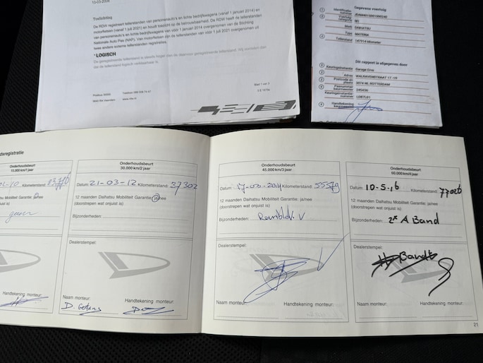Onderhoudsboekjes: Aanwezig