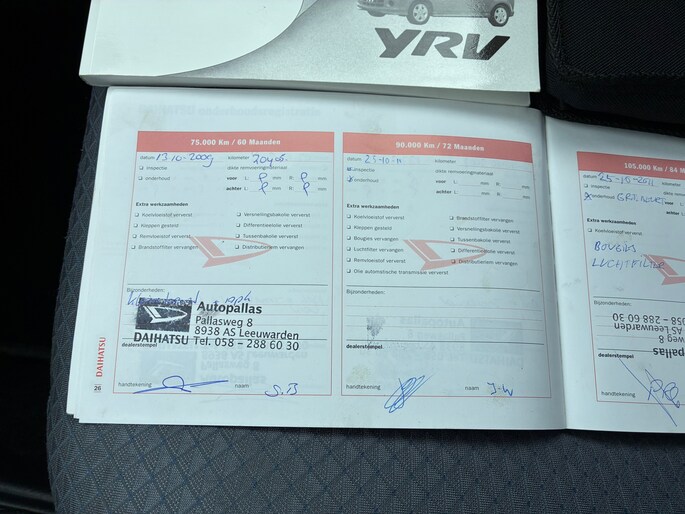 Onderhoudsboekjes: Aanwezig
