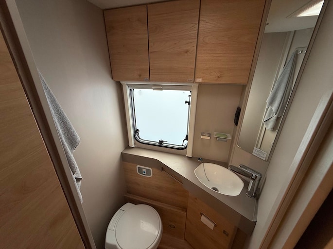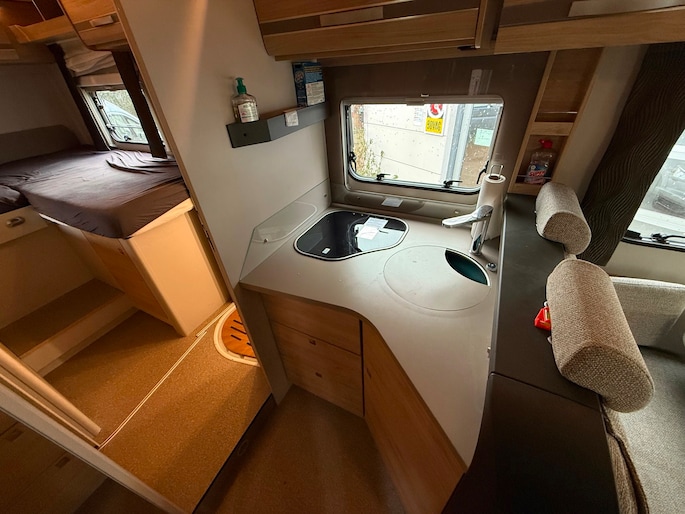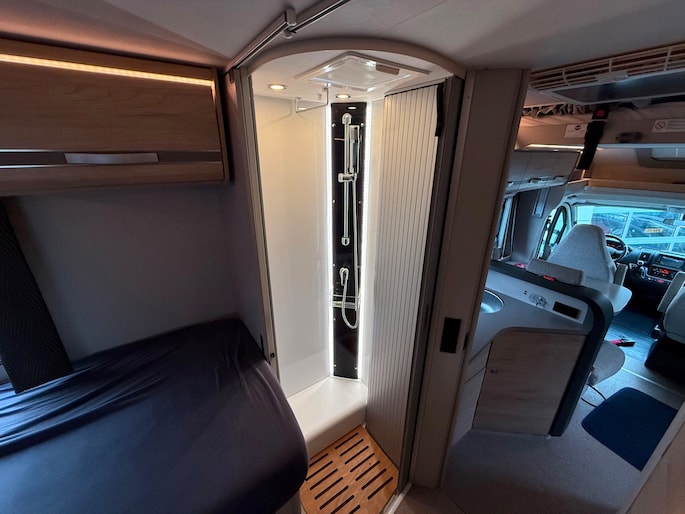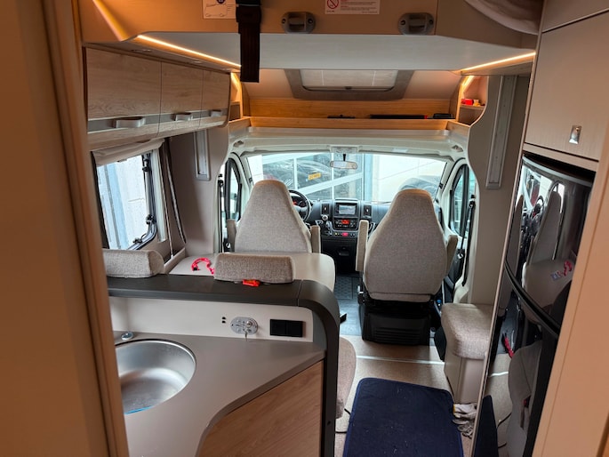 Deze keurige camper is voorzien van vele opties zoals, dak airco, zonnepanelen, hefbed en fietsendrager.