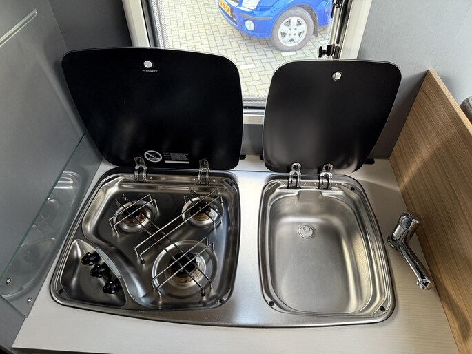 - Airco, bandenspanningscontrole, Traction+ en ESP met hellingassistent- Accessoires: Boiler, Gascomfoor (Aantal pitten: 2), Koelkast, Vriesvak