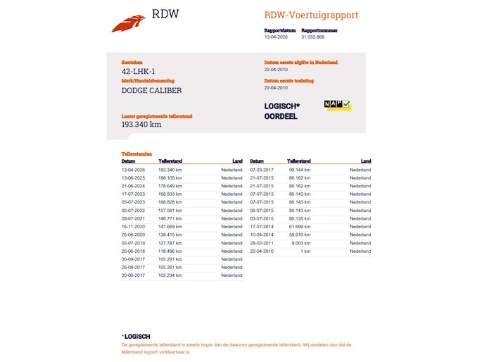 Kilometerstand gecontroleerd