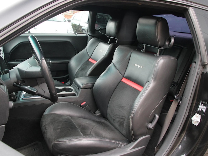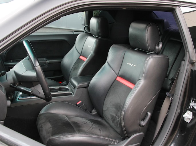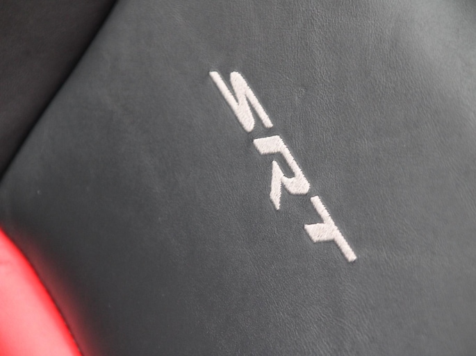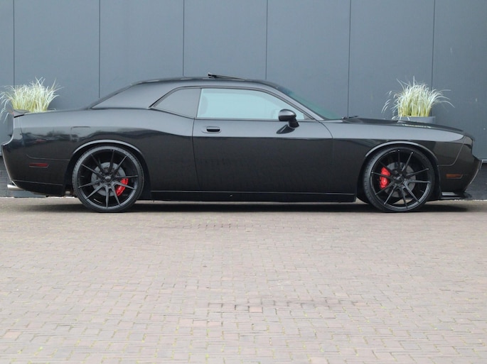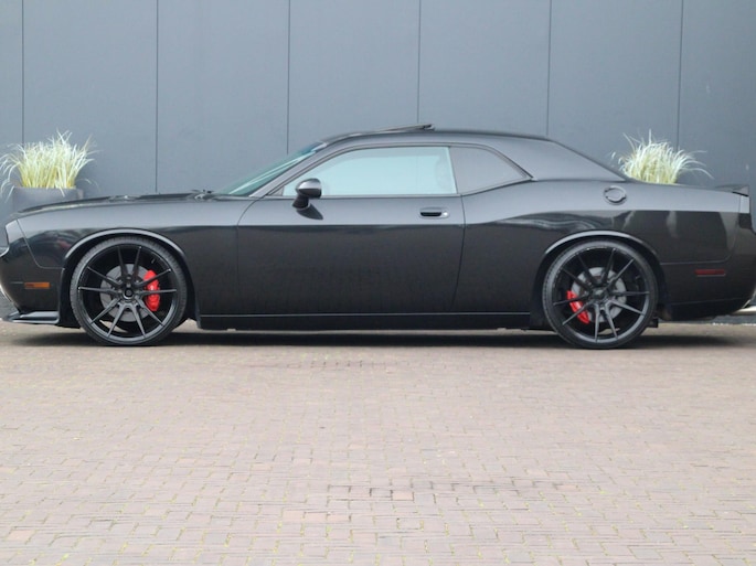 Deze Dodge Challenger SRT8 is alles wat je verwacht van een echte Amerikaanse muscle car – en meer. De brede, agressieve lijnen in combinatie met de imposante 22 inch gloss black velgen geven deze auto een uitstraling die je niet snel over het hoofd ziet. De diepe, dreigende looks worden perfect aangevuld door het sportinterieur met leder en alcantara, afgewerkt met rode accenten en herkenbare SRT-logo’s. Dit is geen auto die je rijdt om op te gaan in het verkeer – dit is een statement op wielen.