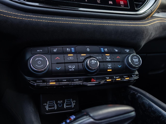Het interieur is ingericht voor comfort en overzicht. Airconditioning, een multifunctioneel stuur, boordcomputer, DAB radio, Apple CarPlay, navigatie en Keyless Go zorgen ervoor dat elke rit gemakkelijk en voorzien is van moderne gemakken. Het schuif kanteldak voegt extra licht en openheid toe aan het interieur, wat vooral tijdens langere ritten merkbaar is. De Durango voelt daardoor als een royale en comfortabele SUV die ondanks zijn formaat plezierig en toegankelijk te rijden blijft.