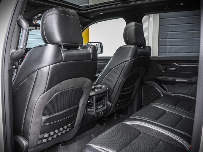 Deze Dodge Ram biedt niet alleen kracht, maar ook comfort. Het luxe interieur is voorzien van hoogwaardige materialen en moderne technologieën. Het panorama dak zorgt voor een open en luchtige rijervaring, terwijl het Carbon Package een sportieve uitstraling toevoegt.