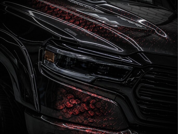 Met zijn luchtvering biedt deze Dodge Ram niet alleen een comfortabele rit, maar ook de mogelijkheid om zware lasten moeiteloos te trekken. De fender flares en de brute velgen geven de truck een stoere uitstraling, ideaal voor wie op zoek is naar zowel stijl als kracht. De unieke cobra wrap maakt deze Dodge Ram een echte eyecatcher op de weg.