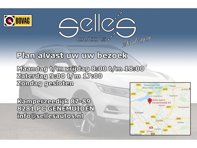 Alle informatie in deze advertentie is met zorg samengesteld. Toch is het niet uit te sluiten dat informatie niet juist, onvolledig en/of niet up to date is. Selles auto's Kamperzeedijk is hiervoor niet aansprakelijk. Bezoekers cq gebruikers van deze site kunnen op geen enkele wijze rechten ontlenen aan de aangeboden informatie en/of prijzen.
