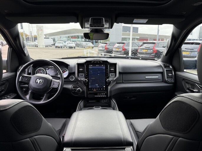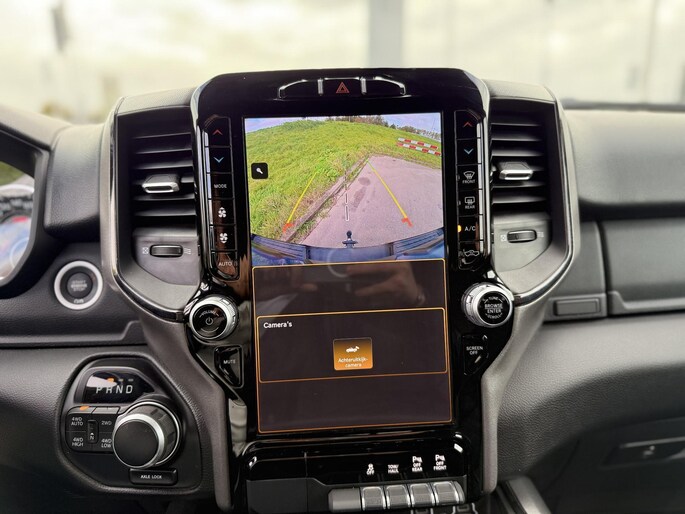 Omdat je nou eenmaal geen ogen in je achterhoofd hebt, is het altijd lastig om achteruit te rijden zonder brokken te maken. De achteruitrijcamera lost dat probleem op. In deze Ram 1500 vind je niet alleen schakelaars op het stuur om het audio-installatiesysteem te bedienen en het full map navigatiesysteem, maar er is ook spraakbediening. De automatische airconditioning zorgt onder alle omstandigheden voor een prettige temperatuur. Met de cruise control kom je bijna nog fitter aan dan je vertrekt. Geen capriolen meer als je met armen vol de auto moet openen. De keyless entry heeft je al herkend en ontgrendelt de Dodge Ram 1500 automatisch.