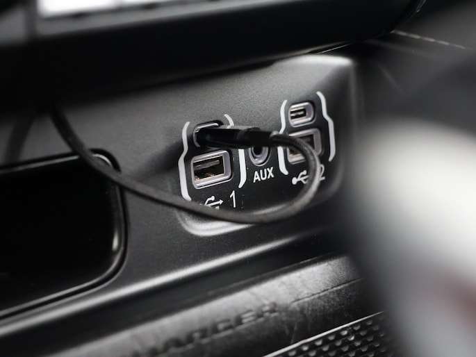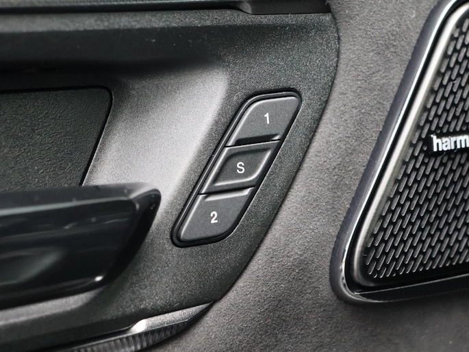 Het interieur is een perfecte mix van kracht en klasse: leder bekleding, Harman Kardon premium audio, verwarmde en geventileerde stoelen, en een digitaal instrumentarium dat elk detail van de performance toont.