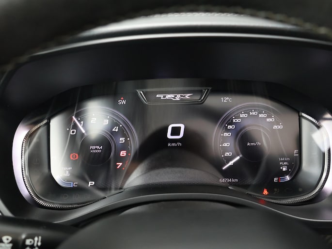 Met zijn brede wielkasten, sportieve luchtinlaten, zwarte details en agressieve voorzijde straalt de TRX pure dominantie uit. Het panoramadak, de TRX-graphics en de black styling details maken hem helemaal af.