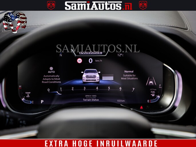 Stap in de meest complete en stoere pick-up van dit moment. Deze RAM 1500 Laramie Night Premium is tot in de puntjes uitgerust – bomvol opties en een uitstraling die indruk maakt.