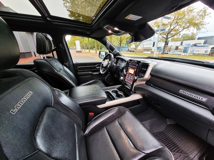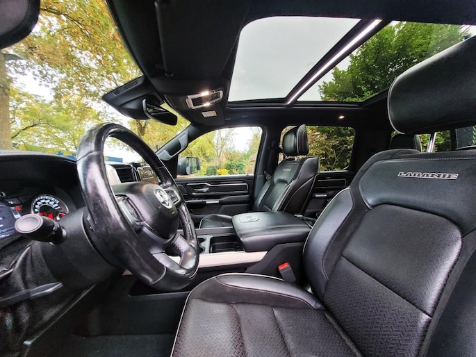 ZEER RIJK UITGERUST DODGE RAM 1500 4X4 5.7L HEMI V8 CREW CAB LIMITED MET 401 PK LARAMIE UITVOERING VAN BOUWJAAR 2019 EN 136.138 KM GELOPEN. RECENT VOORZIEN EEN ONDERHOUDSBEURT EN 2 NIEUWE BANDEN. DE AUTO VERKEERT VERDER IN ZEER NETTE EN MOOIE STAAT.