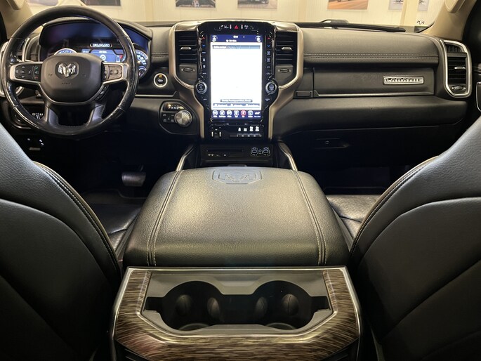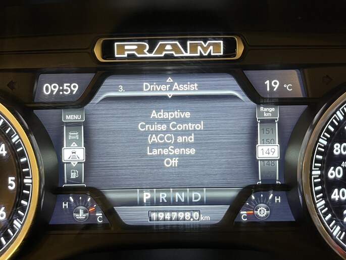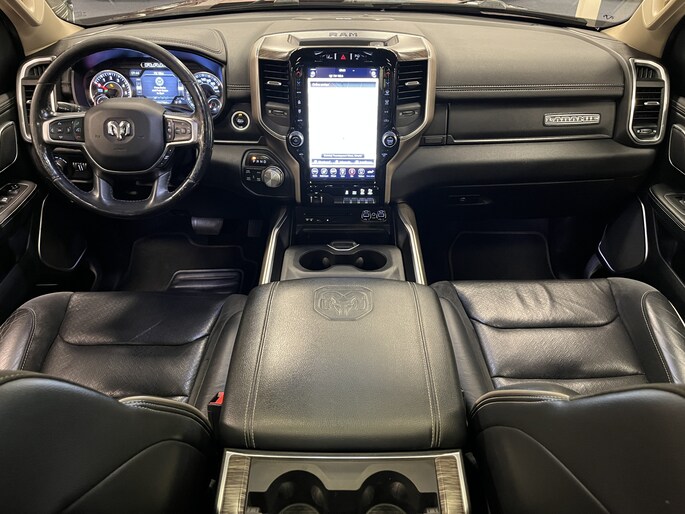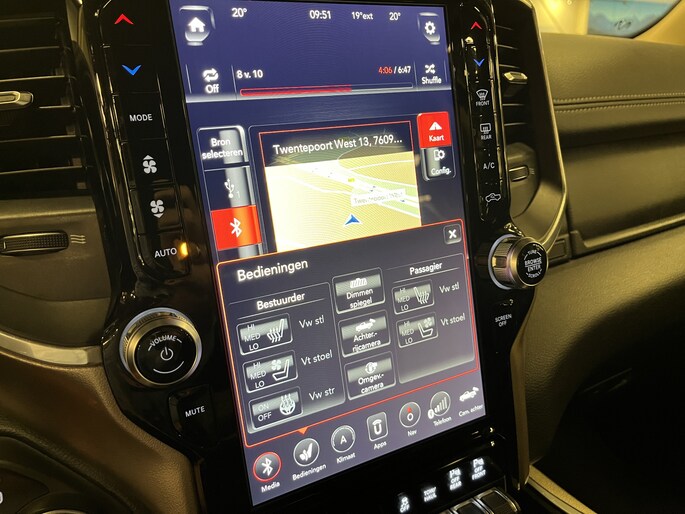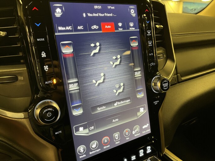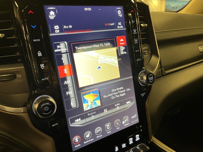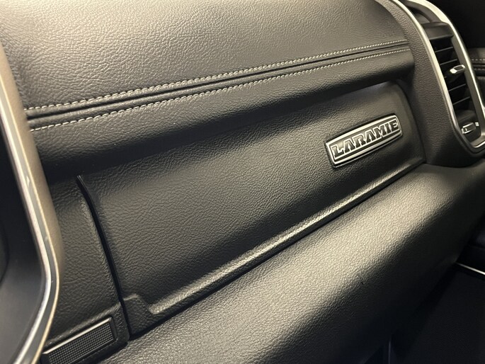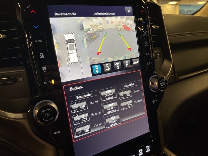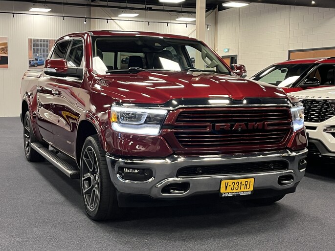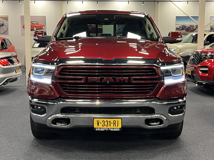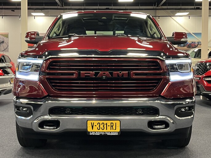 Punctueel onderhouden Dodge Ram 5.7i V8 HEMI 400PK EN 555NM Crew Cab in de extra luxe Laramie uitvoering met o.a. LPG, Panoramadak, laadbaklep, trekhaak, groot 30cm touchscreen, 360 graden surround view camera en 8-traps automaat.