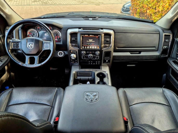 Met een auto als deze Dodge Ram 1500 komt u absoluut goed voor de dag. De automatische transmissie en de achtcilinder motor maken het autorijden snel en comfortabel. Fijn hoor, zo'n elektrisch bediend glazen panorama dak. Voeg daaraan toe: het lederen interieur en u ziet hier een heel mooi uitgevoerde auto. Winters instappen is er niet meer bij dankzij de stoelverwarming. Hoe koud het buiten ook is, het verwarmbare stuurwiel brengt uw handen en vingers snel weer op temperatuur. Natuurlijk behoren 20 inch lichtmetalen velgen, trailer assistent, donker getint glas achter en neerklapbare achterbank ook tot de uitrusting van deze complete auto.