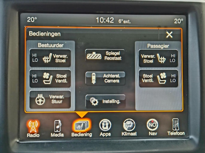 De achteruitrijcamera geeft u duidelijk zicht op de ruimte achter de auto. Ingebouwde spraakbediening maakt het mogelijk om de auto te bedienen zonder dat uw aandacht wordt afgeleid. Het high performance audiosysteem is volledig afgestemd op de akoestiek van de auto; genieten dus! Beste route, verwachte aankomsttijd: uw eigen navigatiesysteem vertelt u alles! De dual zone automatische airconditioning zorgt onder alle omstandigheden voor een prettige temperatuur. Ook is de Dodge uitgerust met: DAB ontvangst, regensensor, cruise control, keyless entry, automatisch dimmende binnenspiegel en isofix-aansluiting.