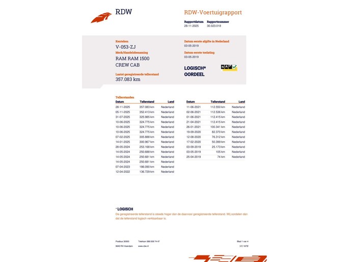 Kilometerstand gecontroleerd