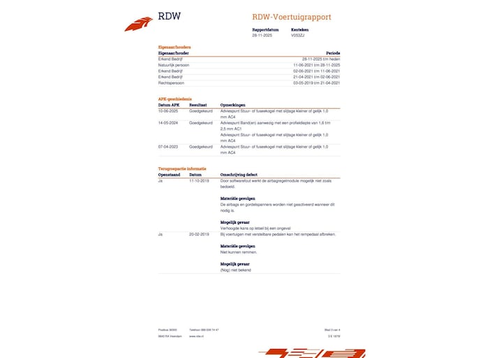 - APK minimaal 11 maanden geldig
