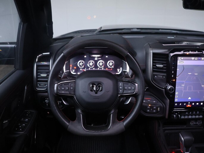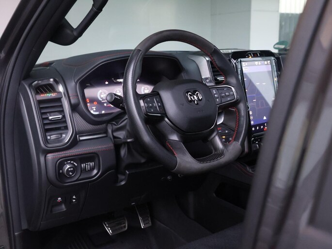 Onder de motorkap ligt de legendarische 6.2 liter V8, goed voor een indrukwekkende 523 kW. De krachtopbouw is explosief, maar altijd gecontroleerd dankzij de permanente vierwielaandrijving en de geavanceerde ondersteltechniek van de TRX. Deze Ram is gebouwd om extreme prestaties te leveren, zowel op asfalt als daarbuiten. Tegelijkertijd zorgt de automatische transmissie en de uitgebreide rijhulpsystemen voor comfort en rust tijdens dagelijks gebruik. Dankzij de LPG-installatie wordt het rijden met deze V8 bovendien verrassend aantrekkelijk voor langere afstanden.