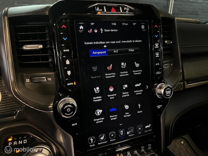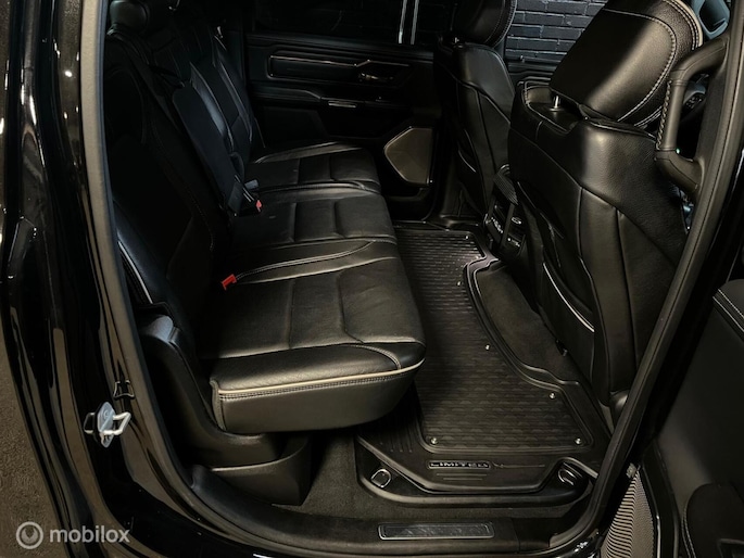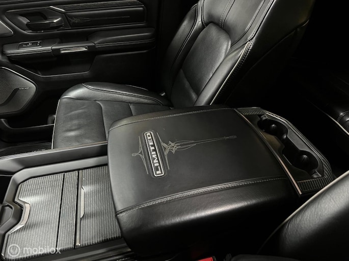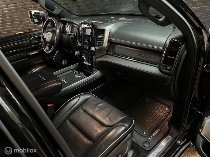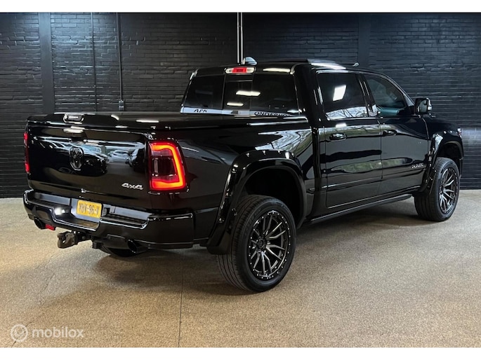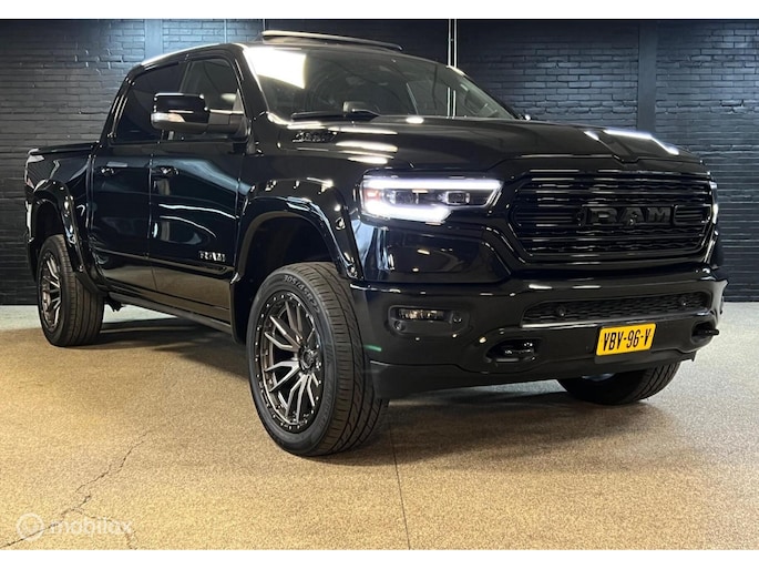 Nieuw binnen bij Neggers Auto's: zeer dik uitgevoerde Dodge Ram 1500 5.7 Limited. Het topmodel in de RAM-lijn, zogezegd een full option exemplaar. Afkomstig van de eerste eigenaar. Een krachtige trekauto, een bedrijfswagen met uitstraling of een heerlijke, ruime cruiser: deze RAM biedt het allemaal. Door de luchtvering is de auto in hoogte verstelbaar. De Dodge is voorzien van alles wat u zich kunt bedenken en nog meer, volledig "black on black". Een rijdend reclamebord voor de zakelijke rijder, welke ook nog eens voordelig te rijden is door het grijs kenteken en de gasinstallatie.