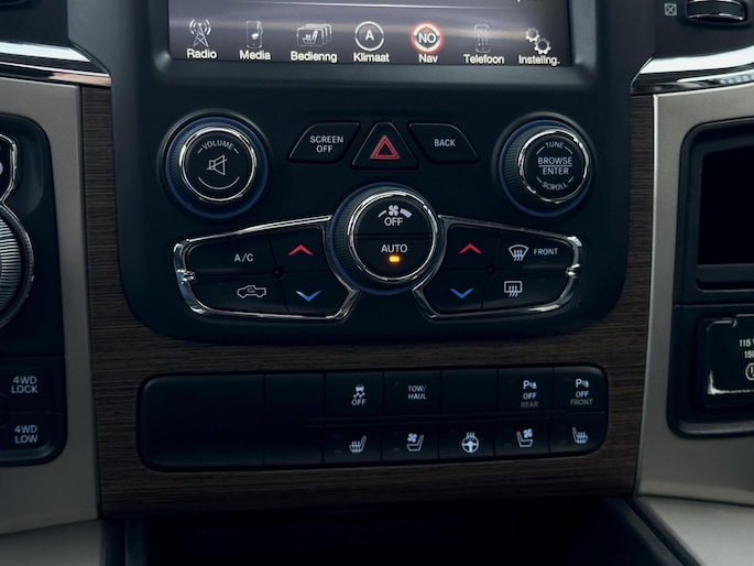 Op het gebied van technologie is deze Ram zeer compleet uitgerust met navigatie, cruise control, keyless entry en een achteruitrijcamera die het manoeuvreren eenvoudig maakt. De stevige trekhaak onderstreept zijn praktische inzetbaarheid, ideaal voor aanhangers, trailers of caravans.