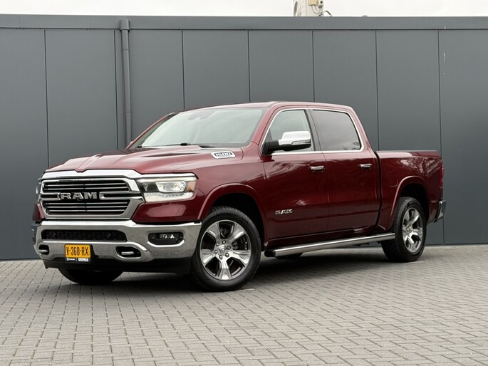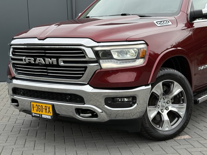 Nette Dodge Ram 1500 5.7 V8 Laramie CrewCab uitvoering in de prachtige kleur Delmonico Red. Rijk uitgevoerd met o.a. Adaptive Cruise control, 12 inch scherm, Rijstrooksensor, Dodehoek detectie, Panoramadak, Stoelverwarming voor en achterin, Geventileerde voorstoelen, Stuurverwarming, Harman/Kardon audio, 360° Camera en Trekhaak met 3500 kg trekgewicht.