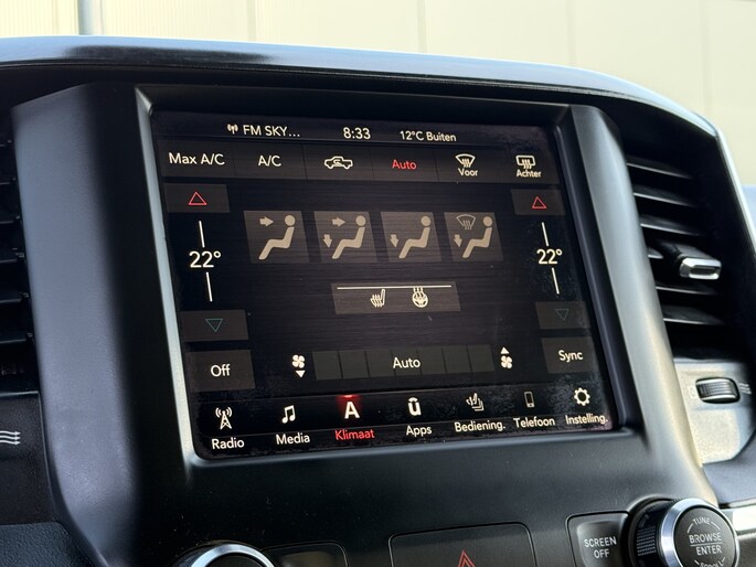 Dodge Ram 1500 5.7 V8 402 PK Bighorn uitvoering origineel Nederlands geleverd uit bouwjaar 2018. Uitgevoerd met o.a. Climate control, Cruise control, Stoelverwarming, Stuurverwarming, Achteruitrij camera, Panoramadak, Gorilla uitlaatsysteem en Trekhaak met 3500 KG trekgewicht.