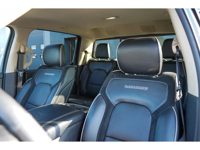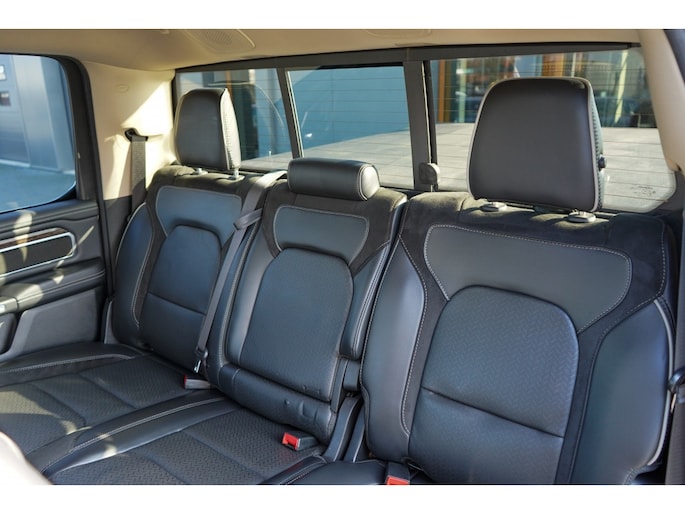 Niet alleen aan de buitenkant, maar ook aan de binnenkant straalt de Ram 1500 luxe en comfort uit. Met voldoende ruimte voor vier personen en een hoogwaardig afgewerkt interieur, is elke rit een plezierige ervaring. De metallic lak benadrukt de kwaliteit en duurzaamheid van deze pick-uptruck, waardoor hij er altijd als nieuw uitziet.