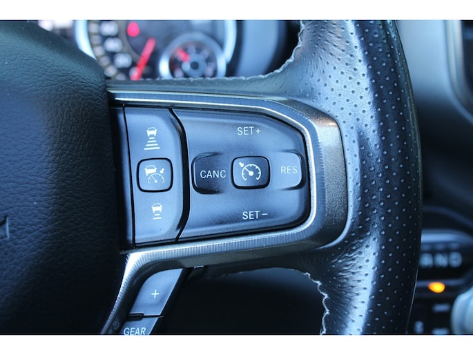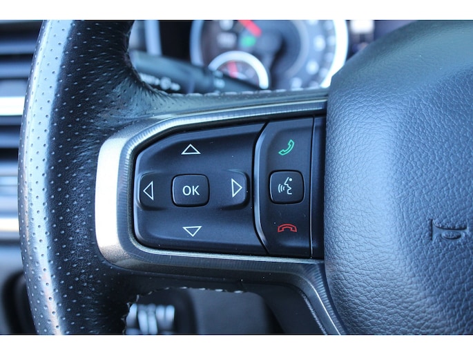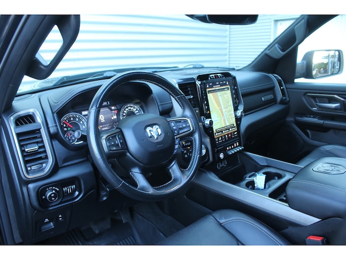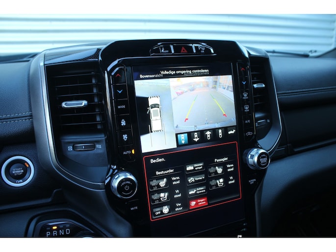 Wat een gemak, die achteruitrijcamera. Alles in beeld zonder capriolen. In deze Ram 1500 vindt u niet alleen schakelaars op het stuur om het audio-installatiesysteem te bedienen en het full map navigatiesysteem, maar er is ook spraakbediening. Het comfort wordt verhoogd door de aanwezige automatische airconditioning. Natuurlijk is er ook cruise control aan boord, waarmee u meer ontspannen en zuiniger rijdt. De sloten worden automatisch ontgrendeld dankzij de keyless entry. Fijne optie!