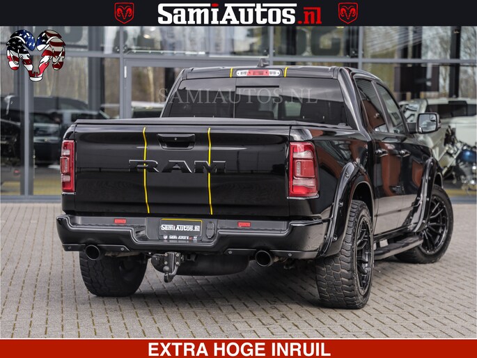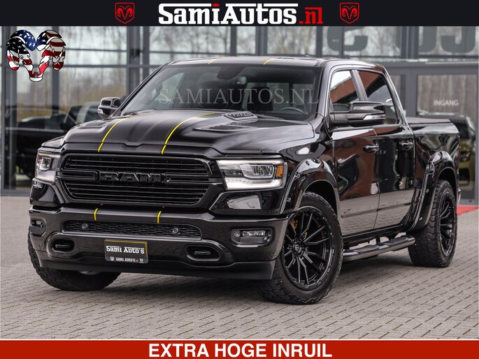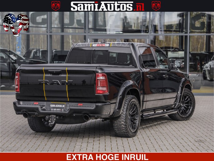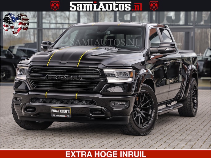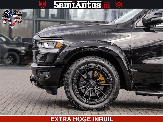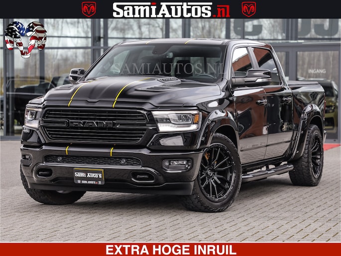 HULK | 5.7 V8 | STRIPING | LUCHT VERING | LARAMIE SPORT BLACK ON BLACK | MEGA DIK | CREW CAB DUBBELE CABINE | 5 PERSOONS | DC | DIKKE WILEN | WIDE BODY |