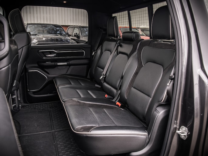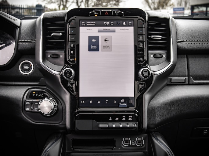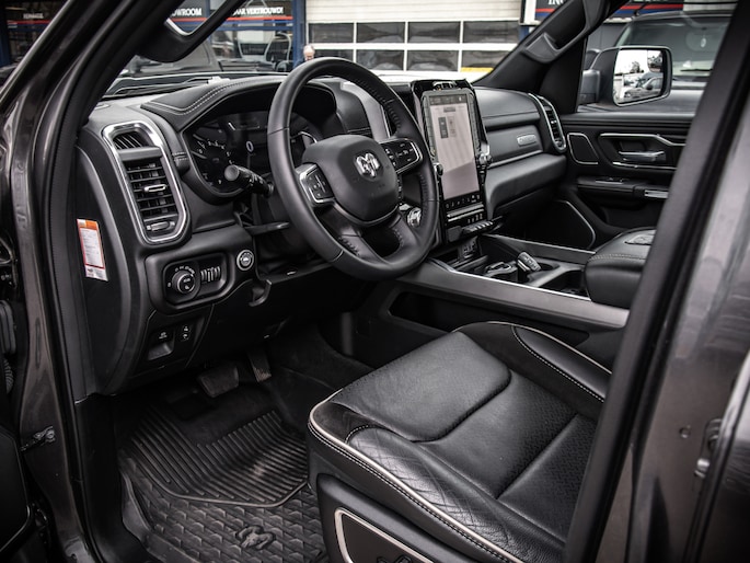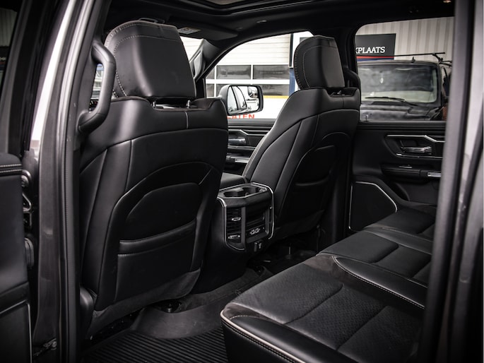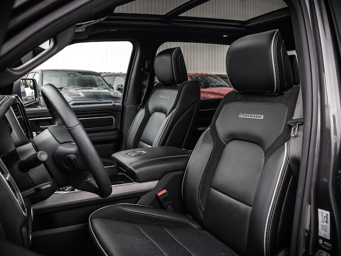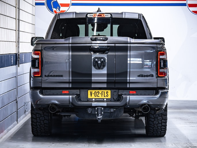 De truck staat op Mickey Thompson Baja Boss banden en heeft subtiele spatbordverbreders die de brede, krachtige uitstraling benadrukken. De Laramie-uitvoering biedt een compleet interieur met comfort en moderne opties, zonder overbodige poespas.